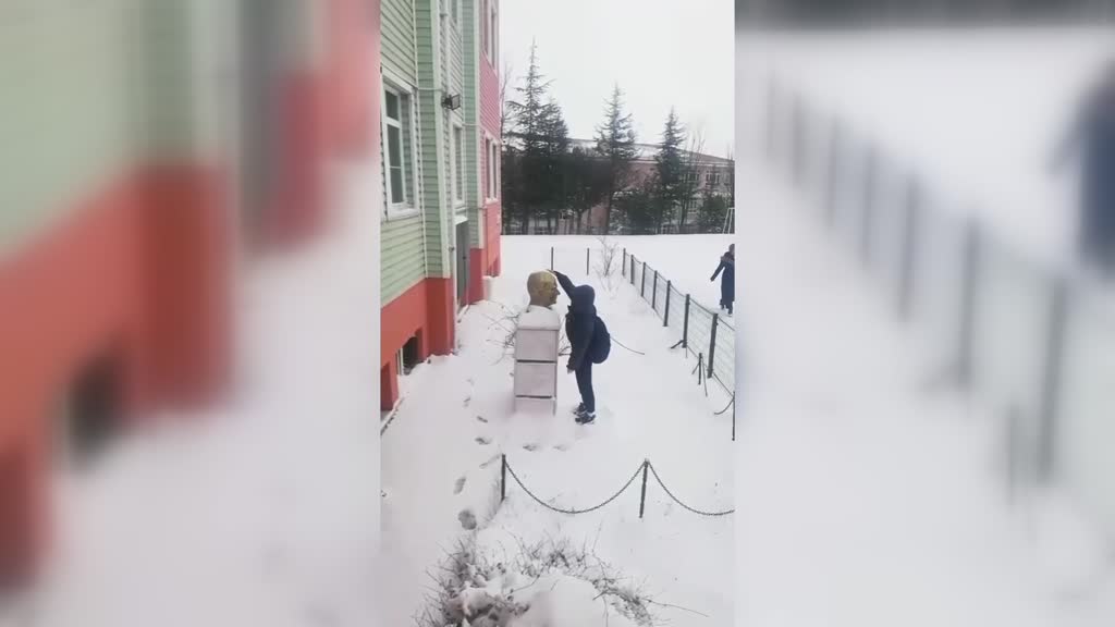 Bolu’nun Gerede ilçesinde bir lise öğrencisinin, okul bahçesindeki Atatürk büstünün üzerini kaplayan karları elleriyle temizlemesi, sosyal medyada takdir ve duygusal yorumlarla karşılandı.