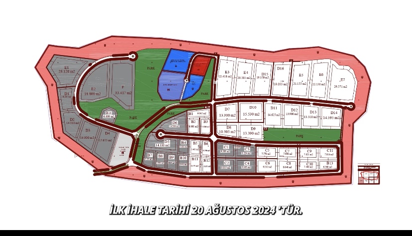 Bolu İli Yeniçağa İlçesi’nde, mülkiyeti Yeniçağa OSB’ye ait olan 19 adet sanayi parseli için ihale ilanı yayımlanıyor. Parseller, gri renkle işaretlenmiş olup, belirlenen muhammen bedel üzerinden üretim tesisi kurulması amacıyla “Kapalı Zarf Usulü” ihale yöntemi ile tahsis ediliyor. Aynı parsele en az iki başvuru olması durumunda ise “Açık Artırma Usulü” ihaleye devam ediliyor.
